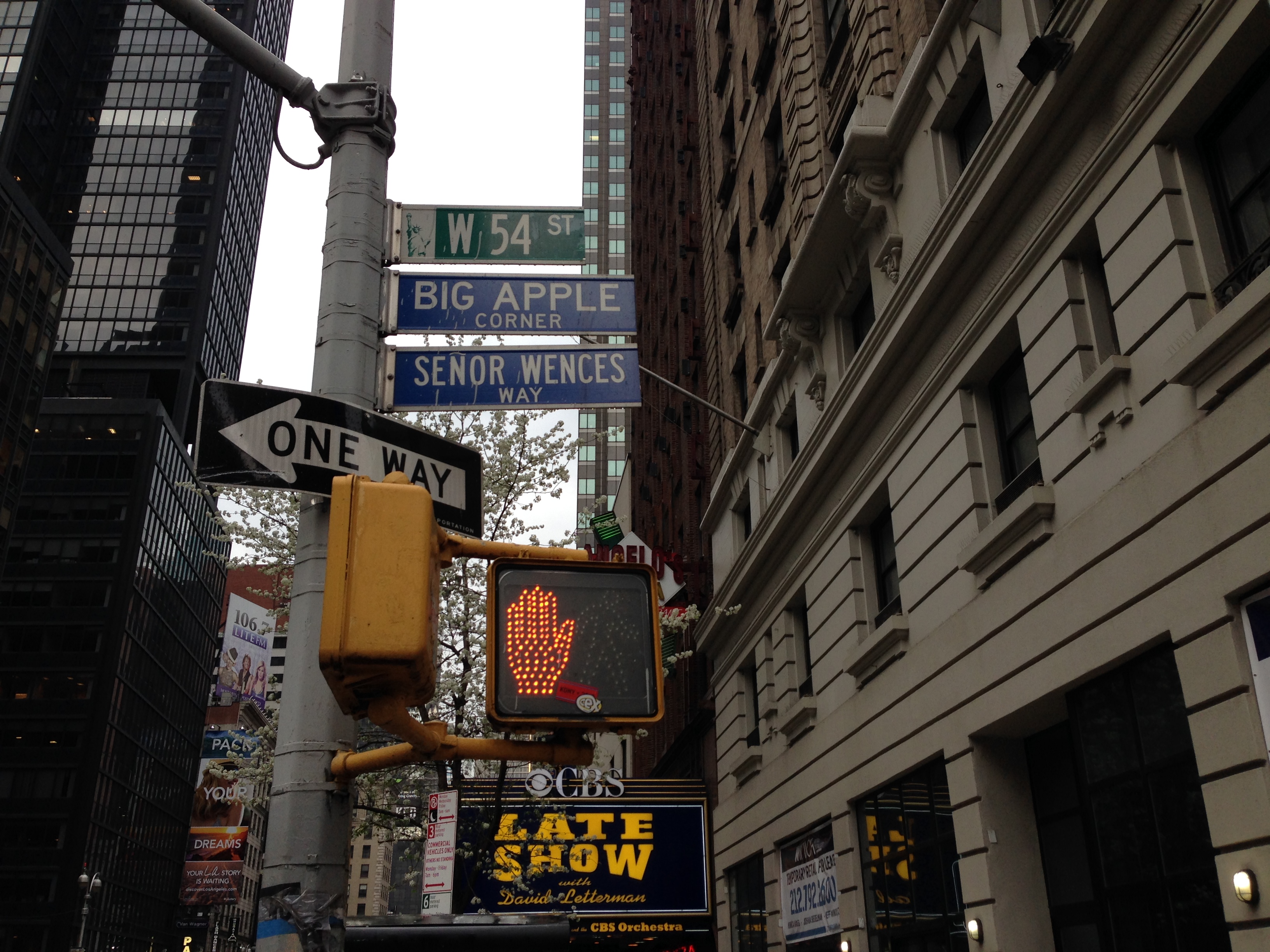 ¿De dónde proviene tan popular referencia? De acuerdo con la investigación más aceptada el nombre de Big Apple proviene del mundo de los deportes, para referirse al gran premio de las carreras de caballos en la era de los veinte y acuñado por el periodista Fitz Gerarld. Esta teoría, bien relatada en un artículo de Wikipedia: Big Apple ganó homologación institucional cuando el famoso alcalde Giuliani, según la misma referencia anterior, aprobó un ordenamiento que señalaba la esquina de la Calle 54 y la Avenida Broadway, como la Esquina de la Gran Manzana, pues ahí vivió por muchos años J. Fitz Gerald. Eso pude corroborarlo como lo muestra la foto adjunta alusiva.