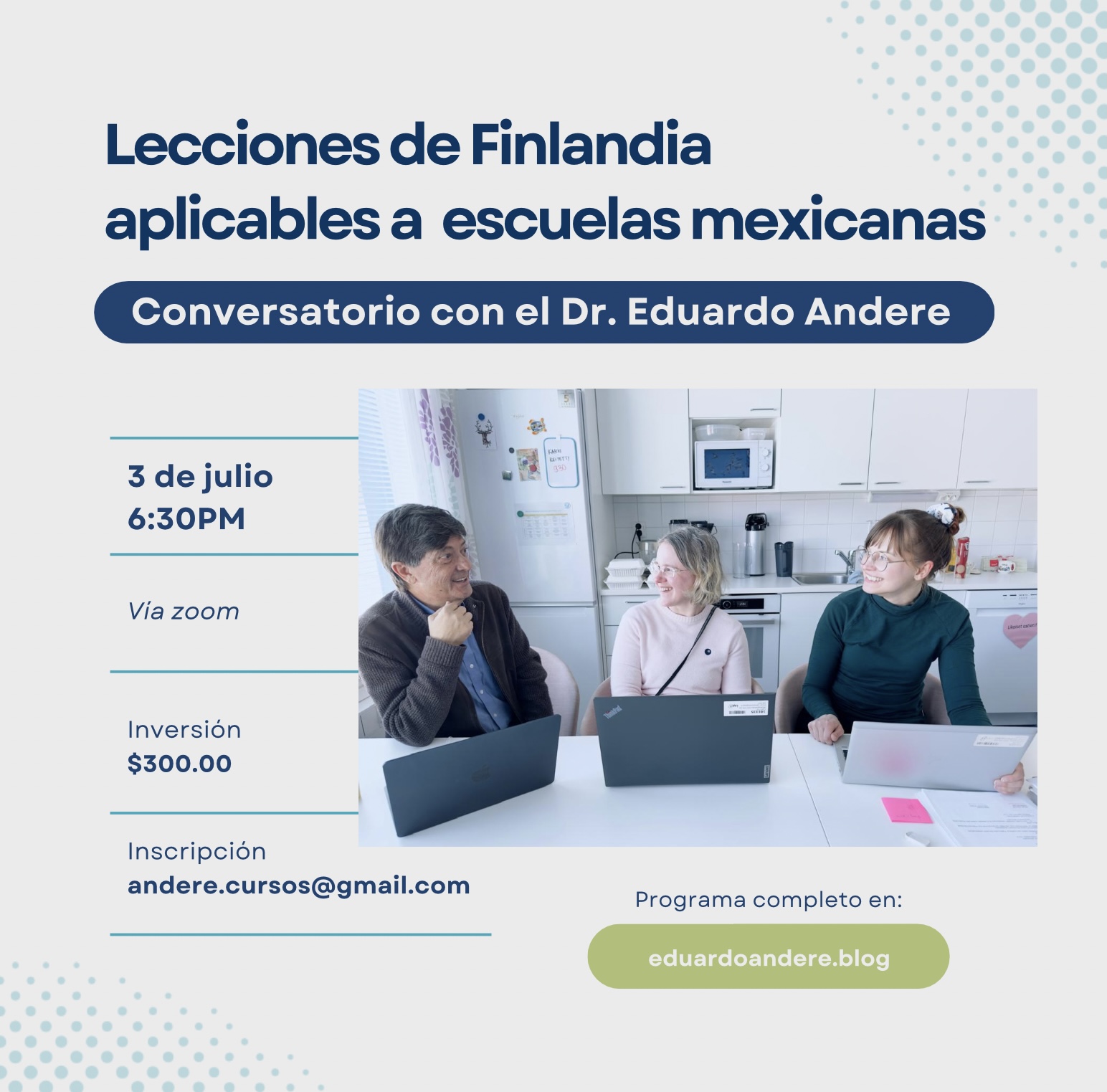 La educación finlandesa sigue despertando interés y admiración en todo el mundo. Con base en más de dos décadas de estudio y observación directa, el Dr. Eduardo Andere invita a directivos, docentes y público interesado a participar en un conversatorio abierto, donde reflexionará sobre lo aprendido en su más reciente estancia en Finlandia y cómo estas lecciones pueden inspirar mejoras realistas y contextualizadas en nuestras escuelas.