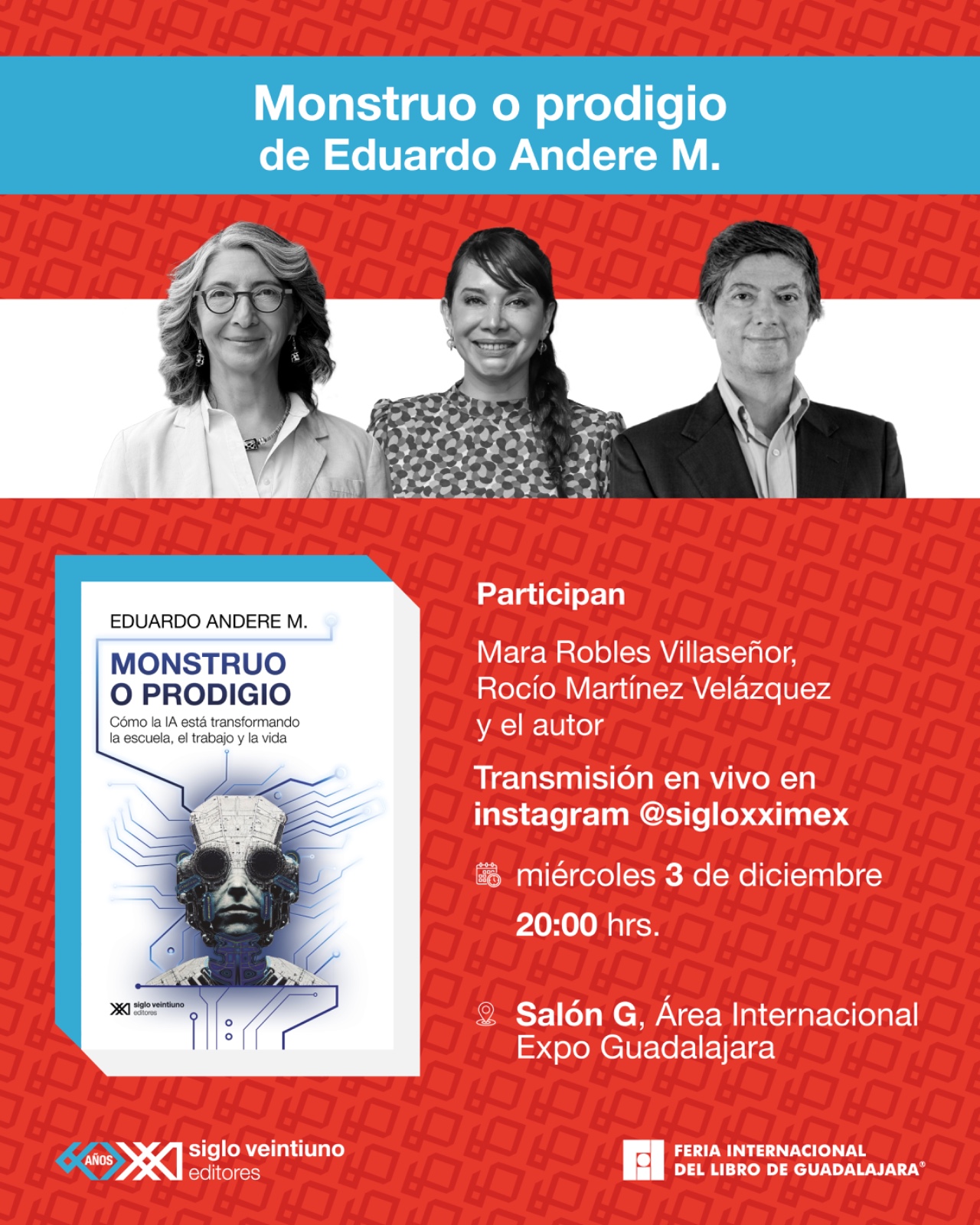 Además, para quienes no puedan asistir de manera física, Editorial Siglo XXI realizará una transmisión en vivo a través de su cuenta de Instagram, lo que permitirá que más personas puedan acompañarnos en esta conversación sobre los desafíos, posibilidades y dilemas de la inteligencia artificial.
